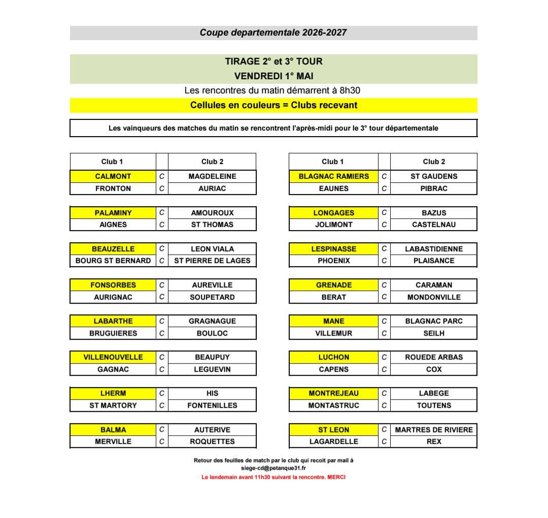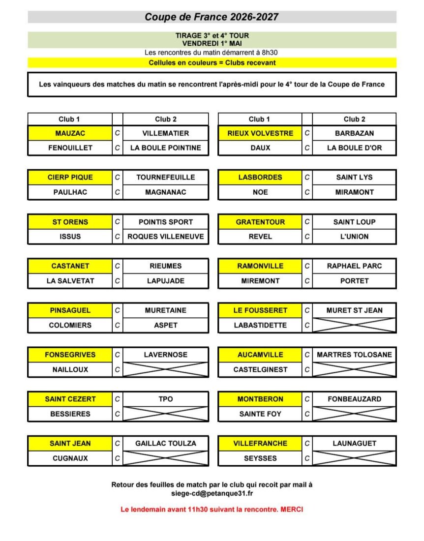 TIRAGE COUPE DE FRANCE et COUPE DEPARTEMENTALE